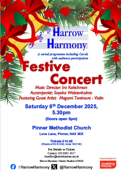 Harrow Harmony is a mixed voices non-auditioning choir established in September 1999.  We rehearse in South Harrow and usually perform three concerts a year in the local area.